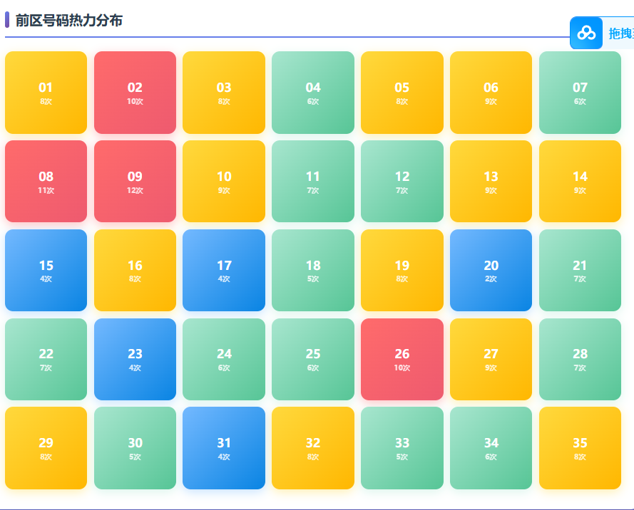 - 冷热号分布:热号(近期高频出现)短期延续概率约15%-20%,冷号(遗漏多期)则可能“回补”。例如,基于2763期数据分析,高频策略可略微提升小奖覆盖率。